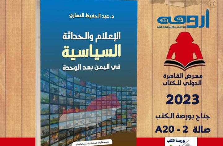 صدر عن مؤسسة أروقة للدراسات والترجمة والنشر بالقاهرة كتاب ” الإعلام والتحداثة السياسية في اليمن بعد الوحدة” للباحث والأكاديمي اليمني الدكتور/ عبد الحفيظ النهاري.
