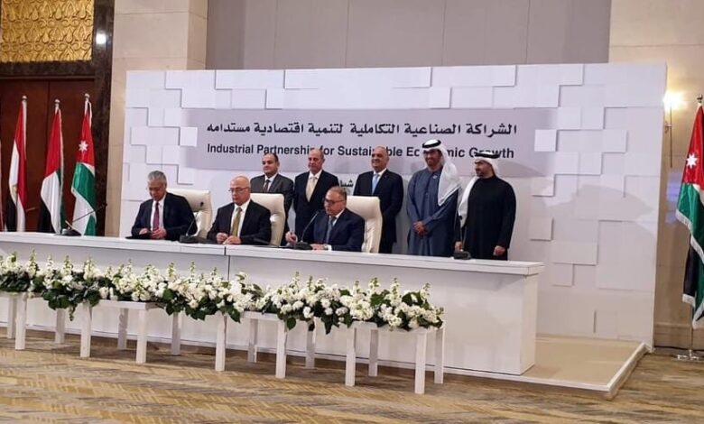 مراسم التوقيع على12 اتفاقية وشراكة في 9 مشاريع صناعية تكاملية بقيمة استثمارية تتجاوز 2 مليار دولار في قطاعات الزراعة والأدوية والمعادن والكيماويات والسيارات الكهربائية ، وذلك فى ختام فعاليات الاجتماع الثالث لـ “اللجنة العليا للشراكة الصناعية التكاملية لتنمية اقتصادية مستدامة”، والتي استضافتها العاصمة الأردنية عمان على مدى يومين.