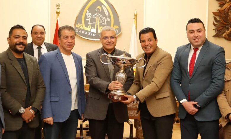 رئيس جامعة الزقازيق يستقبل فريق هوكي الشرقية ويهنئه بالفوز ببطولة أفريقيا للمرة الـ٢٦ فى تاريخة