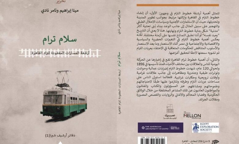 صدر حديثاً كتاب “سلام ترام.. أرشفة المسارات المفقودة لترام القاهرة” عن مركز سرد للتاريخ والأبحاث الاجتماعية “أرشيف شبراً”، وهو عمل ميداني إثنوغرافي يناقش تاريخ ترام القاهرة وخطوطه ومساراته في أحياء القاهرة، وعلاقته بالتغيرات الحضرية والسياسية والاجتماعية في مصر خال 125 عام، منذ عام 1894م حتى عام م2019، ويرصد الحقبة الاستعمار والملكية والجمهورية لمصر، حتى قررت الحكومة إزالته مطلع الألفية.