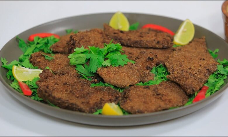 - ثم قومي بعد ذلك بتغليف الكبدة بالردة من الجانبين ثم حمريها في زيت غزير وقدميها مع سلطة الطحينة.