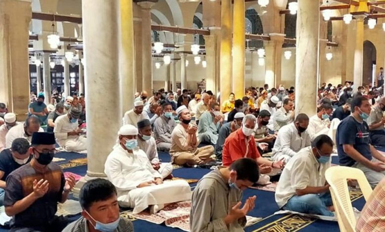 2- ضرورة الالتزام بالإجراءات الوقائية من الإصابة بفيروس كورونا والتي تتلخص في الالتزام بالتباعد الاجتماعي وعدم التصالفح مع إحضار سجادة صلاة شخصية.