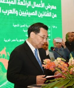 وتابع : “لقد ظلت الحضارتان الصينية والعربية تتواصلان بالإعجاب المتبادل على مدار آلاف السنين منذ فتح طريق الحرير القديم وصولًا إلى التعاون في مبادرة”الحزام والطريق”، مما سجل فصولا تاريخية رائعة من التعلم والاستفادة المتبادلة، فقد كان لاتفاق القمة الصينية العربية الأولى نهاية العام الماضي أثراً في حشد الجهود إزاء بناء مستقبل مشترك المجتمع الصيني العربي نحو المستقبل الجديد، ومثل ذلك نقطة انطلاق تاريخية جديدة لهذه العلاقات، ونأمل أن يشارك مزيد من الفنانين العرب في الرحلات الإبداعية إلى الصين، كي ينجزوا بفنونهم الراقية مزيدًا من أعمال تُعزز التواصل الثقافي بين الصين والعالم العربي، وتعمل على تعزيز أطر الاستفادة المشتركة المتبادلة بين الحضارتين الصينية والعربية”