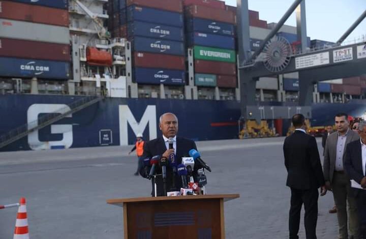 وزير النقل يشهد استقبال السفينة CMA CGM THAMES التابعة للخط الملاحىM