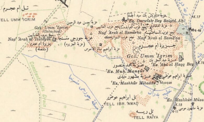 خريطة 1914 تكشف أسرار قرى «أم عجرم» و«عرب درويش» وعزبها التاريخية